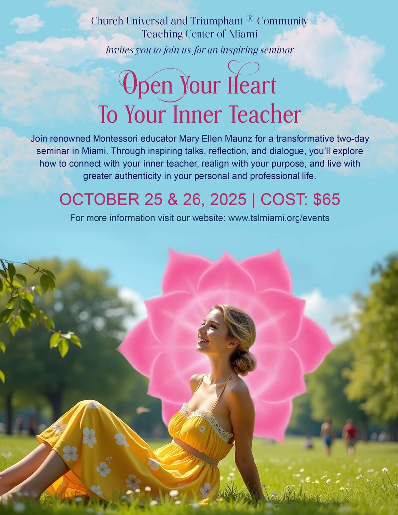 This special two-day seminar with Mary Ellen Maunz is available both in person at the Teaching Center of Miami and online via Zoom. Whether you join us at the center or from across the country, you’ll receive the same transformative teachings, tools, and spiritual inspiration.